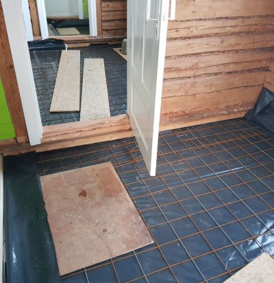 Sauna põranda valamine, torutööd ja seinte ehitus