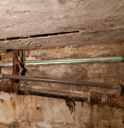 Terasest küttetoru paigaldus keldri fibo-seintesse (betoonpõranda tasemel), ajutise niiskuse kuivatamise jaoks