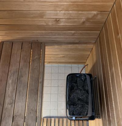Puidust trepi ehitus koos väikese platvormiga soojaku teisele korrusele juurdepääsuks