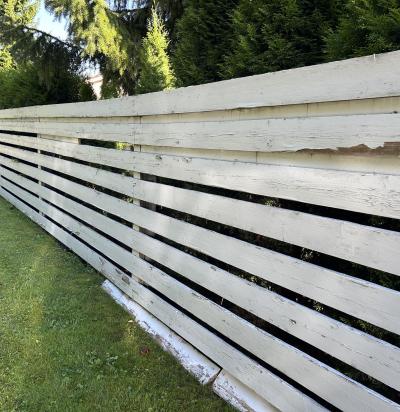 Horisontaalsete laudadega piirdeaia laudise vahetus