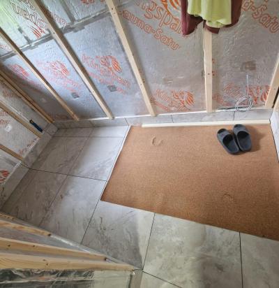 Sauna siseviimistlus ja vaheseina ehitus aiamajas