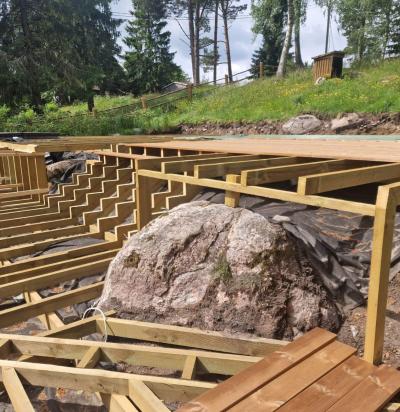 Veranda puitkarkassi ja katuse ehitus plaatvundamendile, vunament3m x 6m valmis.
