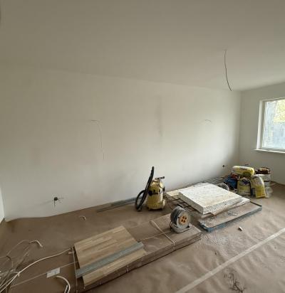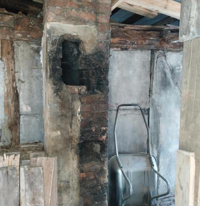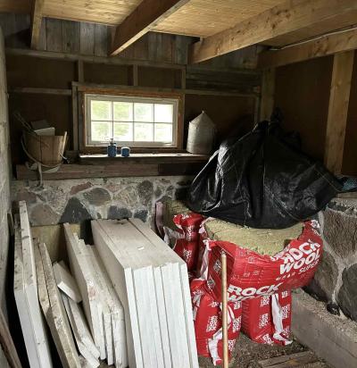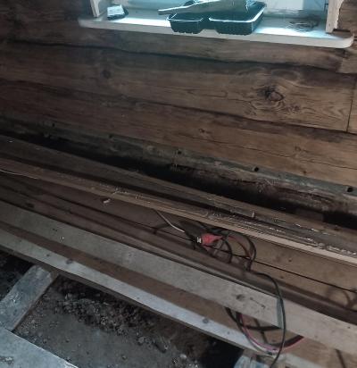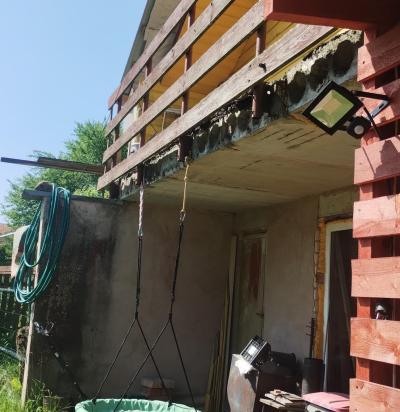 Seina lammutus, tugi palkide plommimine, uue seina ehitamine.