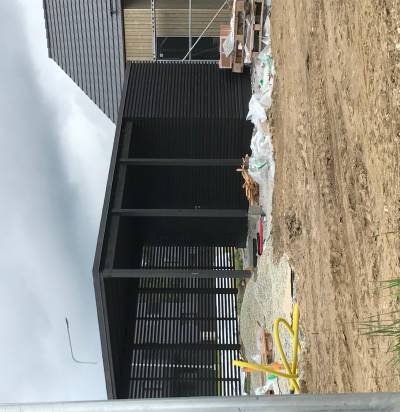 Puidust, vertikaalsete lippidega piirdeaia ehitus