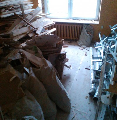 Ehituskoristus - Tapeet seinast maha, mööbel toa keskele lükata