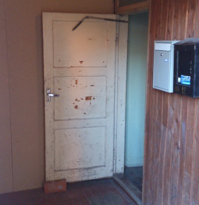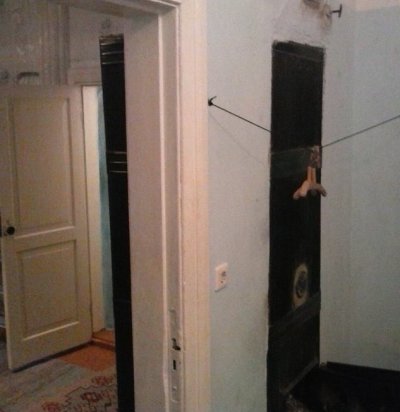 Välisukse paigaldus, pliidi lammutamine , vaheseina moodustamine koos ukse paigaldusega