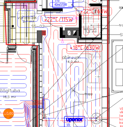 Põranda valamine koos kütte-, vee- ja kanalisatsioonitorustikuga