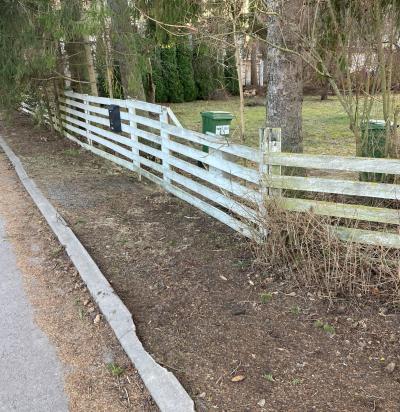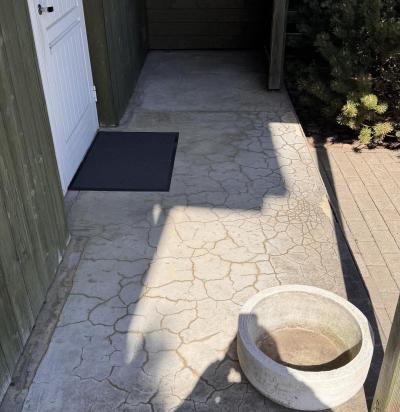 Värvitud betoonposti ja kivimüüri liitevuugi täitmine silikooniga.