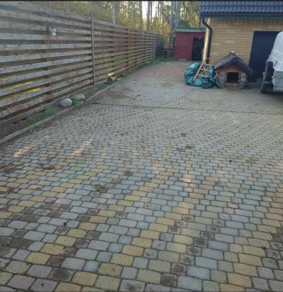 Kiviparketi ehitus. 35m3. Mullapinna koorimine, vanade plaatide äravedu. Killustiku ja liivapadja ehitamine. Kiviparketist platsi ehitamine. Kivi NUNNA hall, 200 x 100 x60 mm. Äärekivide paigaldamine.