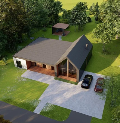 Maja projekt. Olemasoleva maja projekt koos juurdeehitusega.