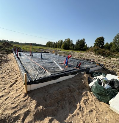 Vundamendi isoleerimine, keldri aknakastide valamine, kõnnitee kivide paigaldus