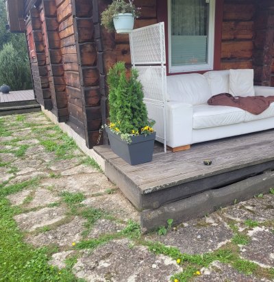 Kortermaja panduse parandamine. Vajunud plaadid, vihmaveega aluspinnast kohati ära uhunud.