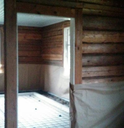 Välisukse paigaldus, pliidi lammutamine , vaheseina moodustamine koos ukse paigaldusega