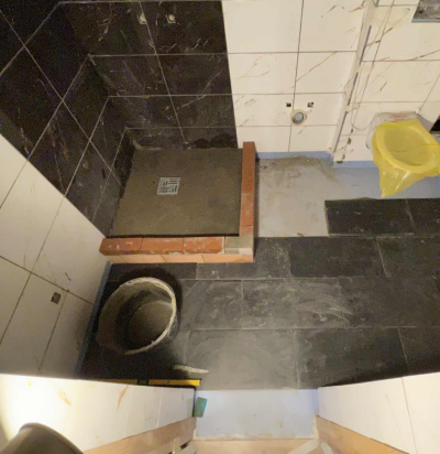 Vannitoas põranda plaatimime ja seina katmime mikrotsememdiga