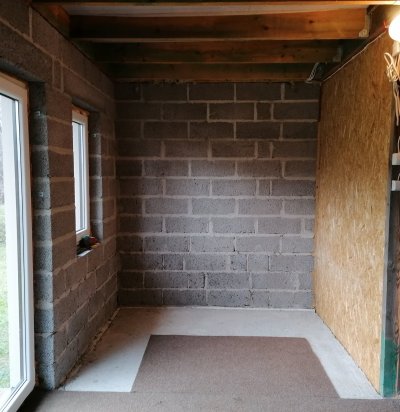 Sauna põranda valamine, torutööd ja seinte ehitus