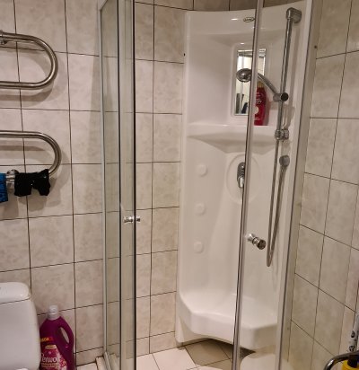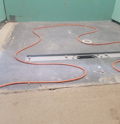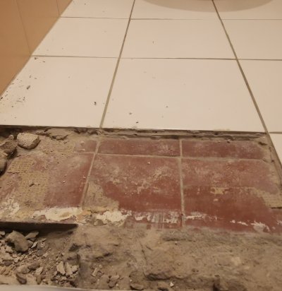 Vannitoa põranda parandusvalamine ja plaatimine. Duššinurga plaatimine.