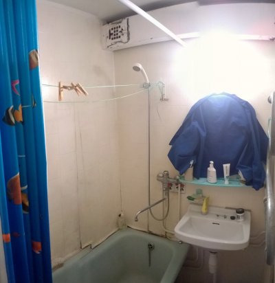 Mustamäel teisel korrusel vanemat tüüpi paneelmajas asuva korteri vannitoa remont. Köögi, abiruumi ja esiku osaline remont.