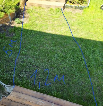 Выровнять завалившийся ряд тротуарной плитки на террасе. Дождями подмыло песок, старый бетонный бортик раскрошился. Нужно снять один-два ряда плитки, подсыпать песок, выровнять, уложить плитку ровно обратно и укрепить край цементом