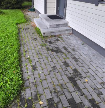 Eramaja tänvakivi ehk parketi pagaldus.vana kivi ülesse, uus sängitus, tihendamine ja kivi tagasi.