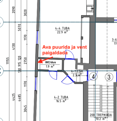 Kubu väljatõmbe ava tegemine puitkarkassiga majja